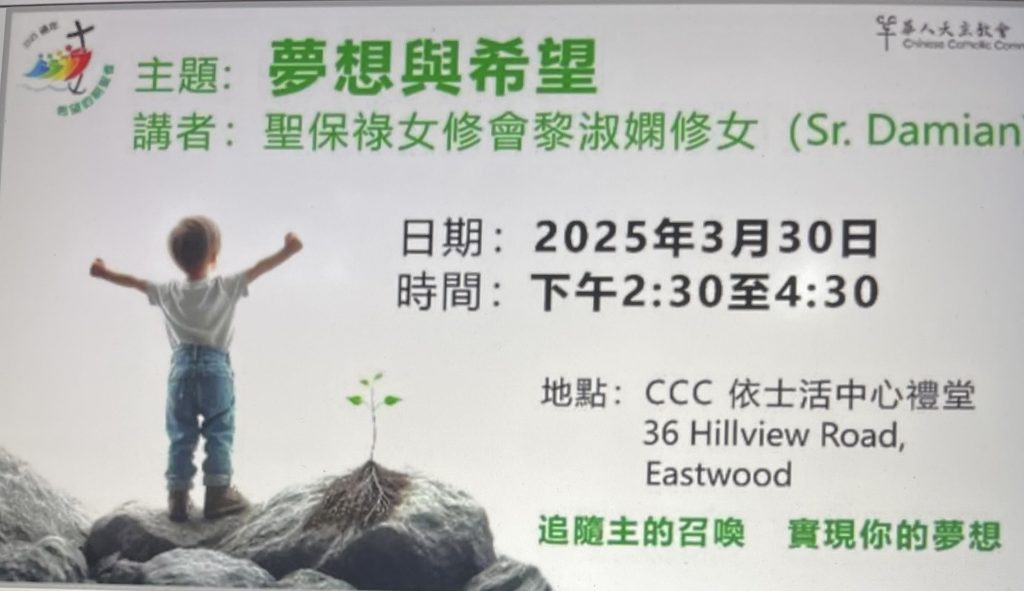 Gallery 珍貴片段 CCC Eastwood Centre celebration 中秋節聯歡活動19-10-25 photos Fr.John Kwan 關𠍇棠神父Retreat Talk27/28/29-9-2025 photos & videos CCC Homes Celebration Father’s Day 4-9-2025 Fr. Gerard Kelly Spiritual Talk 𩆜修講座17-08-2025 華人天主教會禧年09.08朝聖日 Fr. Gerard Kelly 70th Birthday Celebration 20-07-2025 Catcards 聖言誦讀聚會 29-06-2025 The Way of Light 光明之路 4-05-2025 Santa Sabrina Triduum Event photos 17-19 April 2025 Celebration Easter Sunday at St.Kevin Church photos 20-4-25 Celebration of Holy Saturday at Santa Sabrina College photos 19-4-25 Good Friday event at Santa Sabrina College photos 18-4-25 Holy Thursday event at Santa Sabrina College photos 17-4-25 Celebration Palm Sunday event photos at Lindfield Church 13-4-25 Palm Sunday event photos at St.Kevin Church 13-4-25 Dumpling Fundraiser for Seminarian Scholarship 30-03-2025 夢想與希望Sr. Damian ‘s talk at St Kevin Church photos & video 30-3-25 Jubilee pilgrimage event to St. Peter Church Goulburn photos & video 29-3-25 不一樣的拜苦路23/3/25 CCC Eastwood Center celebration Chinese New Year 2025 photos 23/2/25 高齡之家與Catholic care 擧辦長壽養生大師班 photos 11/2/25 禧年希望朝聖之旅St. Kevin Church photos & videos highlights 9/2/25 高齡之家新禧彌撒Celebration Mass by Fr. Harry Chan photos & video 6/2/25 34th Family Camp 2024 photos & videos 26-28/12/24 34th Family Camp 2024 – John Poon’s talks photos & videos 26-28/12/24 CCC Home 25th Silver Jubilee Celebration Mass photos & videos 23-11-24 Fr. Lucas Leung 96th Birthday Celebration Mass photos & viedos 8-10-24 CCC Thanksgiving Adoration 3-11-24 photos & videos Children Emotion Coaching Workshop 13/10/24 CCC Granny Smith Festival 19-10-24 CCC Eastwood St. Kevin Church Celebration Mid- Autumn Festival 22-9-24 CCC Homes – Father’s Day Celebration 僕人訓練領袖工作坊photos CCC celebration mass at St. Mary MacKillop Chapel photo 10-8-24 Walk with Christ photos 2-6-24 CCCH plaques blessings photos by Fr. Harry 6-6-24 CCC Wollongong Outing 4-05-2024 CCC Holy Week Events 2024 梁加恩神父晉鐸71th週年感恩彌撒photos & videos 6-1-24 Moss Vale CCC Family Camp Dec.26-28 Youth Mass photos CCC Lindfield Centre Fr. Peter Lo Celebration Mass 31-12-23 Photos event CCC Eastwood Centre St.Kevin Church New Year Eve 2024 Celebrations Mass CCC 2023 Dec.26-28Family Camp events CCCH & Catholic Care celebration mass photos & videos 14-12-23 CCC thanksgiving dinner photos with Religious priests and sisters 5-12-23 11 November 2023 Thanksgiving event photos at St.Kevin All Souls Mass 2-11-23 celebrated by Fr. Michael Goonan at CCCH Fr. Francis Ching’s visit CCC group at Lindfield Church talks & dinner photos & videos 22-10-23 聖保祿年福傳日photos &videos 8-10-23 夏輔理主教訪問高齡之家photo & video 12-10-23 Fr.Ching’s visit CCCH at Toongabbie photos 5-10-23 CCCH Promotion Advertisement CCCH social gatherings day one introductory 健康寶講座 2012 Christmas Party at CCC Homes Chinese School Presentation 2019 Chinese New Year Celebration 2018 Eastwood Lindfield in December 2012 CCC 40th Photos Gallery Holy Week 2023 Lindfield centre 20th/25th anniversary celebration CCCH & Catholic Care Sydney Inaugural Mass 6-7-23 Protected: CCCH tenants celebrations 端午節 22-6-23 Protected: CCCH & Catholic Care Sydney signing MOU 15-6-23 photos CCC Walk with Christ 11-6-23 CCC Autumn Outing Kurri Kurri Town 20/5/23 CCCH CELEBRATION MASS EVENT 2-2-23 Easter Triduum 14-04-2022 CCCH Rosary Gathering Photos 6-5-21